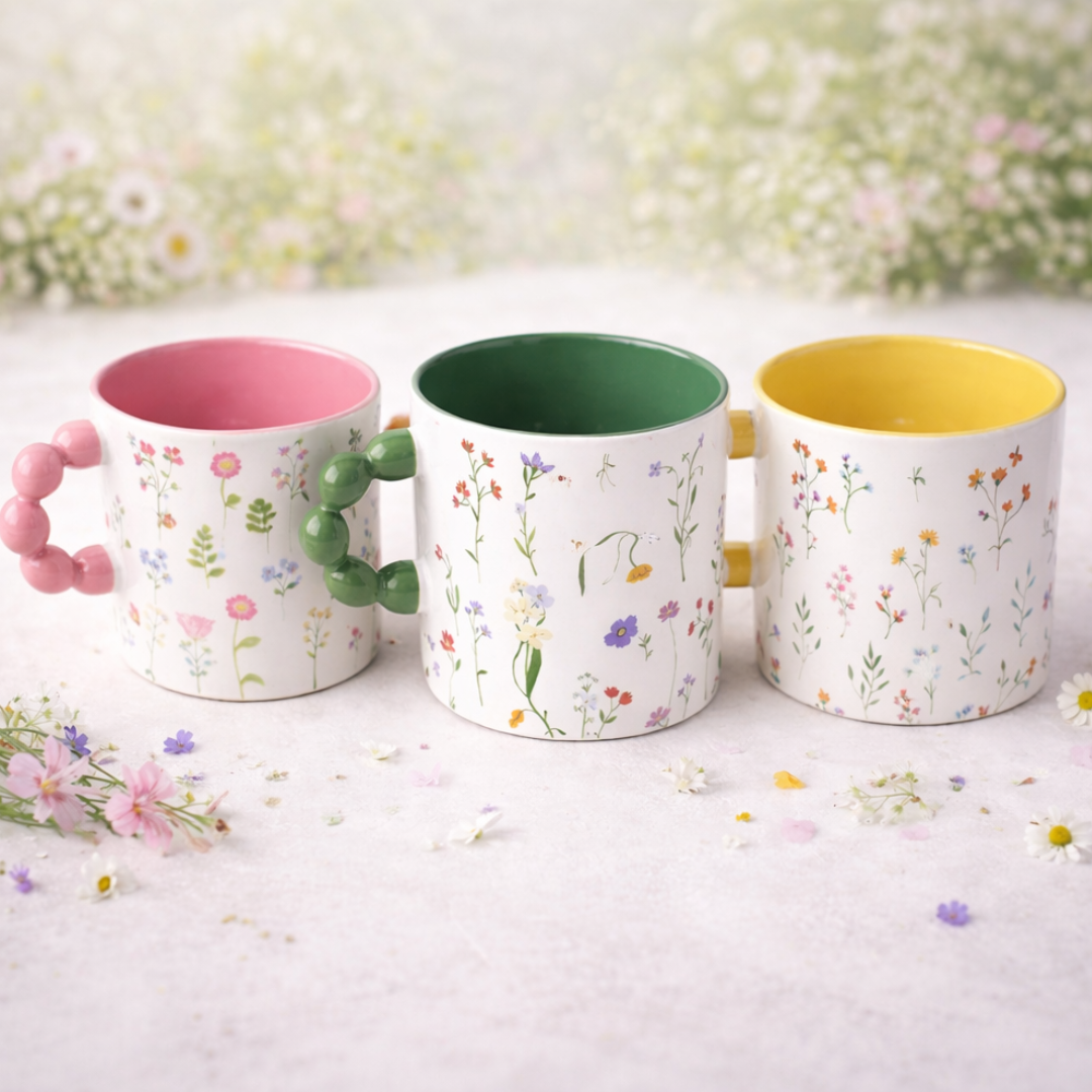 Φέρτε την άνοιξη στην καθημερινότητά σας με την κούπα Blossom Joy από πορσελάνη . Με ρομαντικό floral μοτίβο σε watercolor ύφος και ιδιαίτερη ανάγλυφη λαβή σε σχήμα χαντρών, αποτελεί ιδανική επιλογή για καφέ, τσάι ή ρόφημα σοκολάτας. Η λευκή βάση αναδεικνύει τα μικροσκοπικά αγριολούλουδα, ενώ το εσωτερικό σε παστέλ απόχρωση χαρίζει χαρούμενη και φωτεινή αισθητική. Ιδανική για δώρο ή για να ομορφύνει το πρωινό σας τελετουργικό.