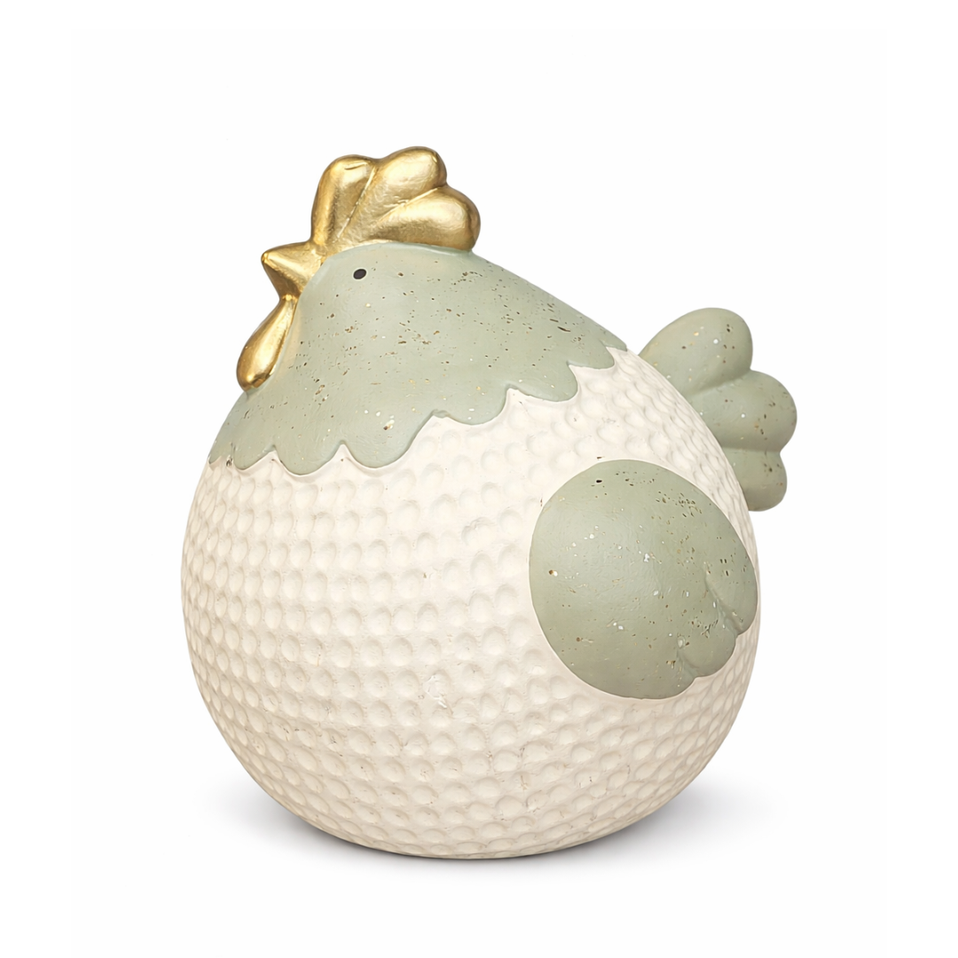 Χαριτωμένη κεραμική διακοσμητική κότα σε παστέλ αποχρώσεις, με ανάγλυφη υφή και κομψές χρυσές λεπτομέρειες.