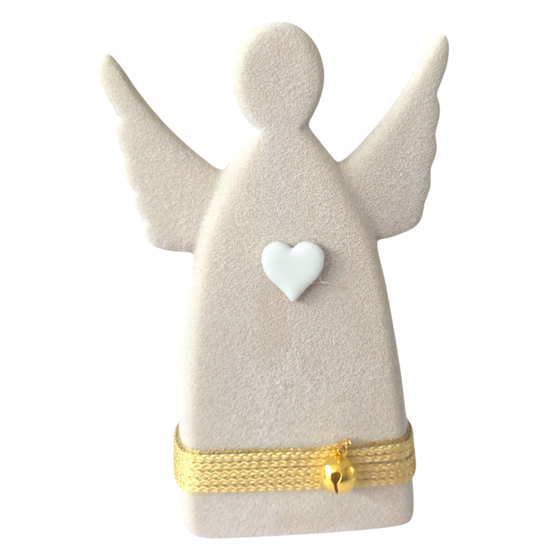 Το κεραμικό αγγελάκι σε απόχρωση εκρού με λευκή καρδούλα στο στήθος, αποπνέει γαλήνη, προστασία και αγάπη.