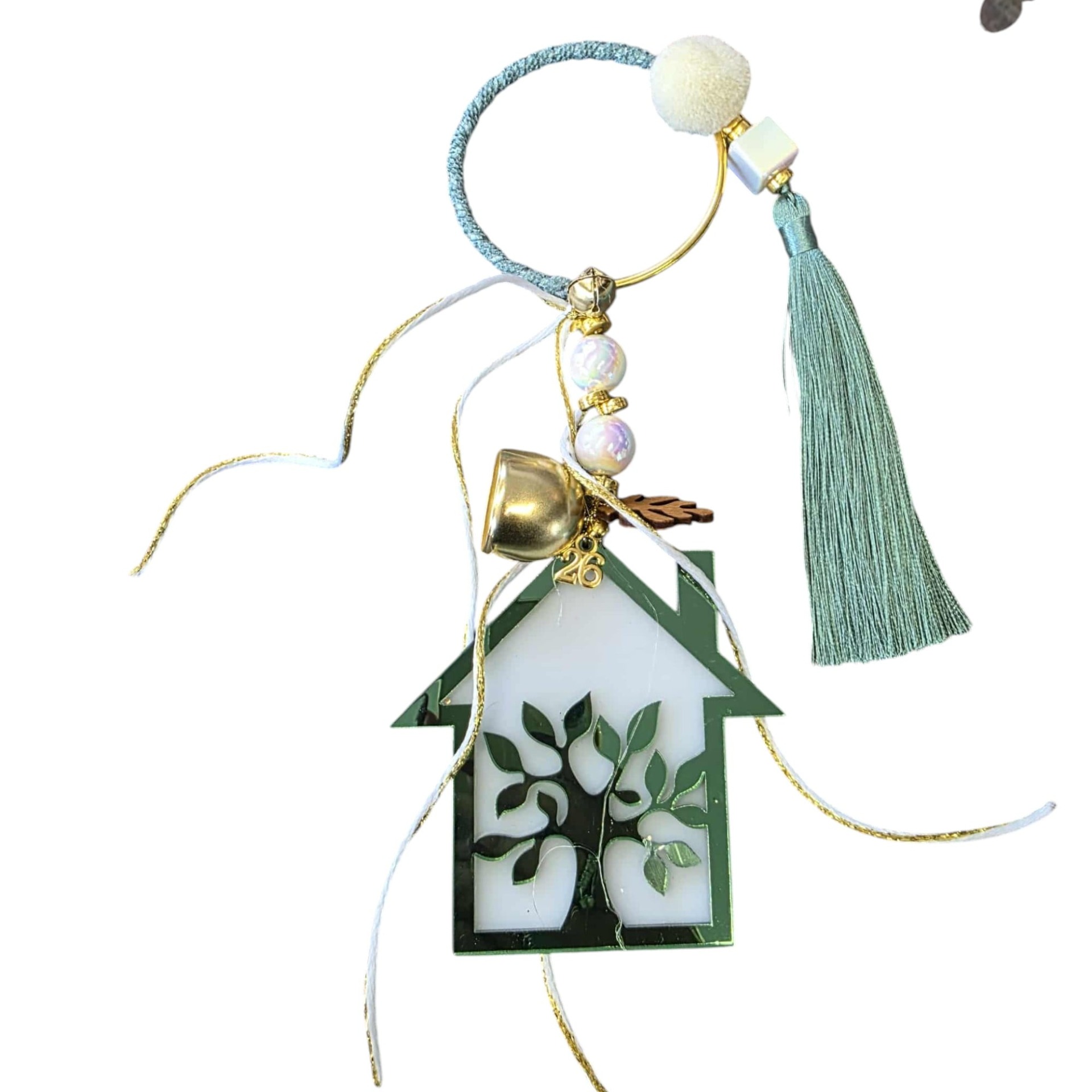 Ένα σύγχρονο γούρι με κομψότητα και βαθύ συμβολισμό! Το σπίτι με το δέντρο της ζωής χαραγμένο στο εσωτερικό, συμβολίζει την προστασία, τη γαλήνη και την ανάπτυξη. Συνοδεύεται από χρυσό κουδουνάκι, χάντρες, φούντα, και μεταλλικό "26".