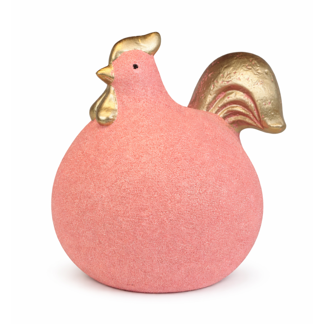 Μοναδική κεραμική διακοσμητική κότα σε απαλό ροζ χρώμα με εντυπωσιακές χρυσές λεπτομέρειες.