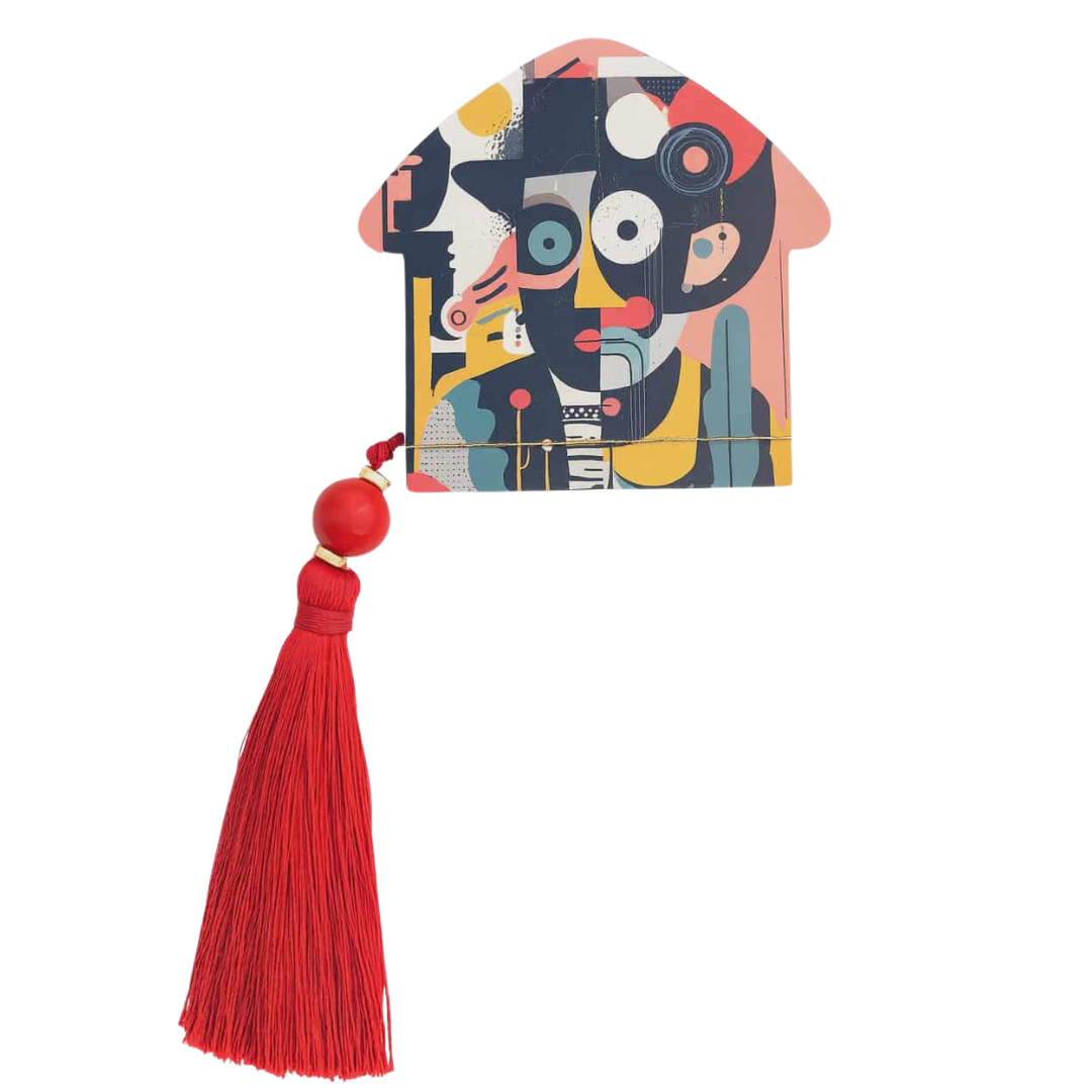 Ένα ιδιαίτερο διακοσμητικό γούρι–σπιτάκι από πλεξιγκλάς διπλής όψης, σχεδιασμένο με μοντέρνα, καλλιτεχνική αισθητική.
