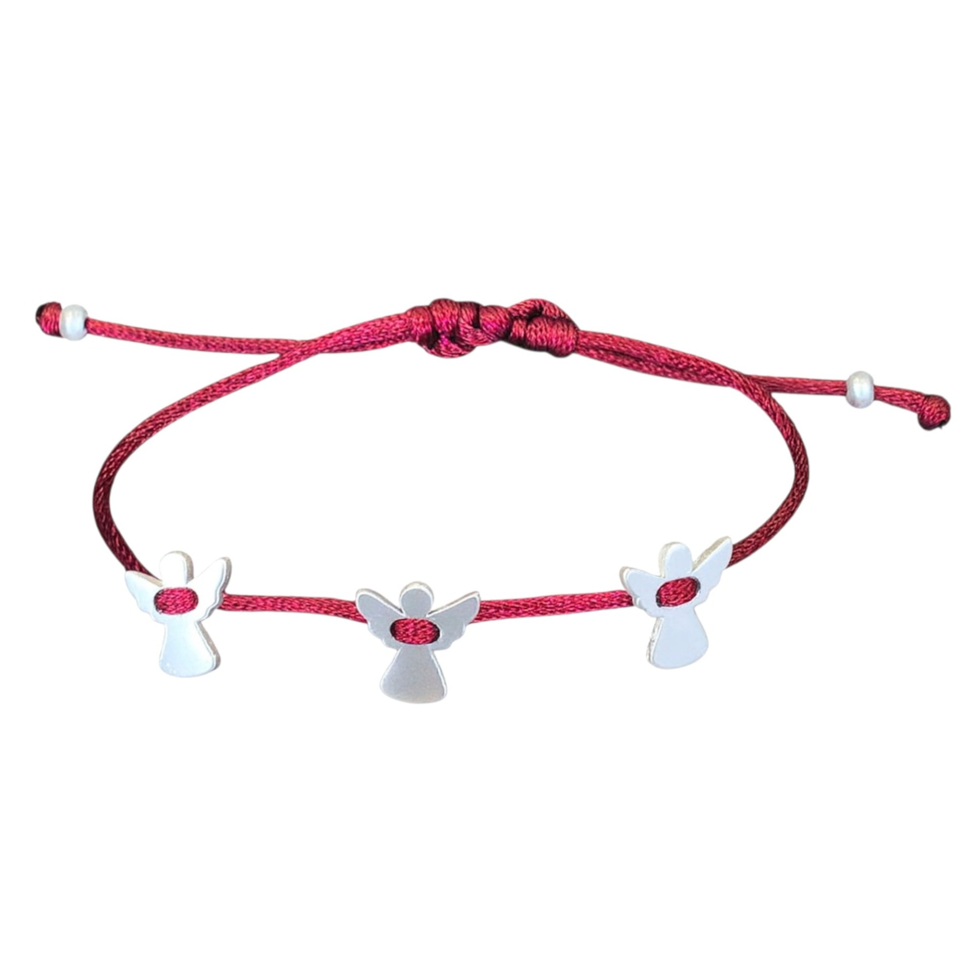 Αέρινο και φωτεινό, το κόκκινο κορδονάκι «κρατά» τρεις μικρούς αγγέλους από ατσάλι, σαν σύμβολα προστασίας και αγάπης. Ιδανικό ως δώρο με νόημα για τα αγαπημένα σας πρόσωπα ή ως προσωπικό φυλαχτό.